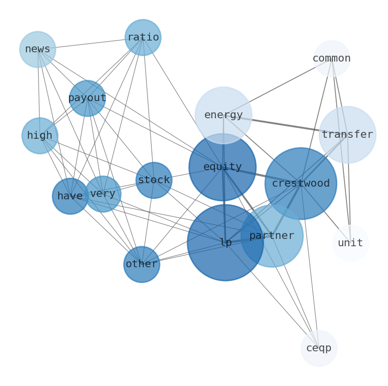 This document will help you to evaluate Crestwood Equity Partners LP without reading an infinite amount of sources. Relying only on stock quotes or prices to make investment decisions is a mistake. Analyzing and observing stock charts, highs and lows and other numerical data does not allow to evaluate the real value of a company. Stock quotes and prices are the result of underlying characteristics of a company and of events and news happening around them. For this reason, investing must be based on information, not numbers. As a solution, we programmed an artificial intelligence that reads the whole internet and the uses natural language processing and vectorizers to summarize the information. Usually, the AI reads several hundred pages and summarize it to a short document. This document presents our results. We found that the most common words in the internet about Crestwood Equity Partners LP are: Crestwood, LP, Partners, …