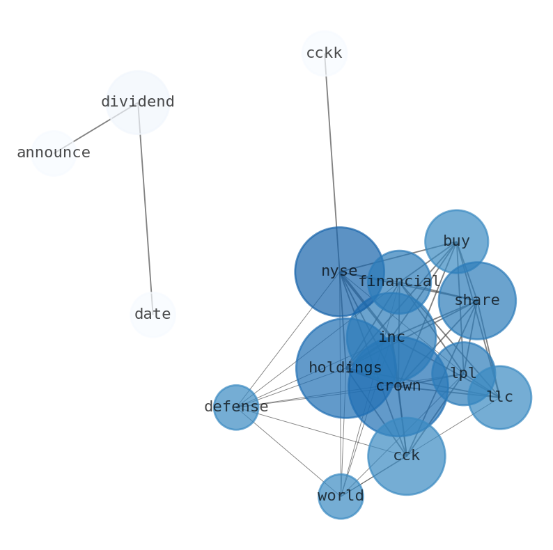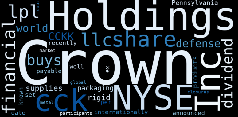 How much time have you spent trying to decide whether investing in Crown Holdings? Many investors start with the dream of being free. They expect to find on the stock market an option to have time to develop their own interests and hobbies. That is, a way to escape a 9 to 5 job. However, investment is complex and investors end up spending whole days (and nights) trying to figure out which the right stock to invest is. The dream of stock investing becomes the nightmare of facing infinity amounts of information. As a solution, we programmed an artificial intelligence that reads the whole internet and the uses natural language processing and vectorizers to summarize the information. Usually, the AI reads several hundred pages and summarize it to a short document. This document presents our results. We found that the most common words in the internet about Crown Holdings are: …