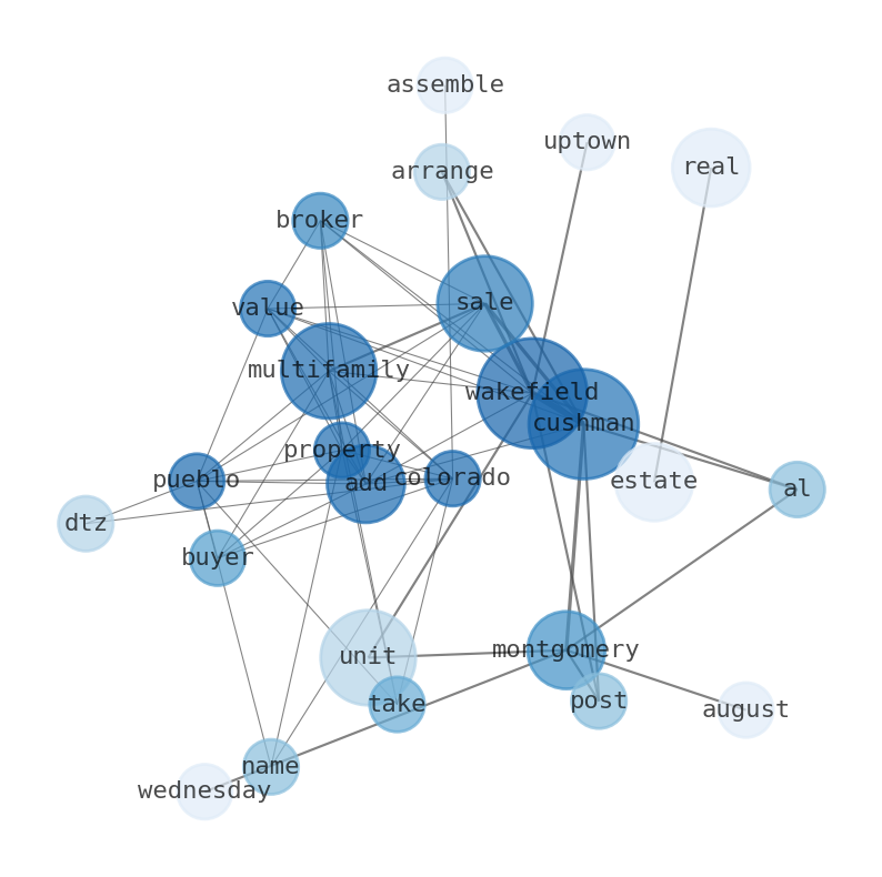 Are looking for the most relevant information about Cushman & Wakefield? Investor spend a lot of time searching for information to make investment decisions in Cushman & Wakefield. This task is often burdensome and consumes huge amounts of free time. It also leads to mistakes due to fatigue and bounded rationality. As a solution, we programmed an artificial intelligence that reads the whole internet and the uses natural language processing and vectorizers to summarize the information. Usually, the AI reads several hundred pages and summarize it to a short document. This document presents our results. We found that the most common words in the internet about Cushman & Wakefield are: Cushman, Wakefield, Multifamily, real, estate, company, Montgomery, and the most common words in the summary are: cushman, home, wakefield, business, lake, market, hotel, . One of the sentences in the summary was: Cushman & Wakefield arranged the sale of Uptown …