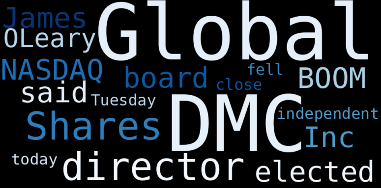 This document will help you to evaluate DMC Global without reading an infinite amount of sources. Relying only on stock quotes or prices to make investment decisions is a mistake. Analyzing and observing stock charts, highs and lows and other numerical data does not allow to evaluate the real value of a company. Stock quotes and prices are the result of underlying characteristics of a company and of events and news happening around them. For this reason, investing must be based on information, not numbers. As a solution, we programmed an artificial intelligence that reads the whole internet and the uses natural language processing and vectorizers to summarize the information. Usually, the AI reads several hundred pages and summarize it to a short document. This document presents our results. We found that the most common words in the internet about DMC Global are: DMC, director, Shares, Global, Inc, NASDAQBOOM, say, …