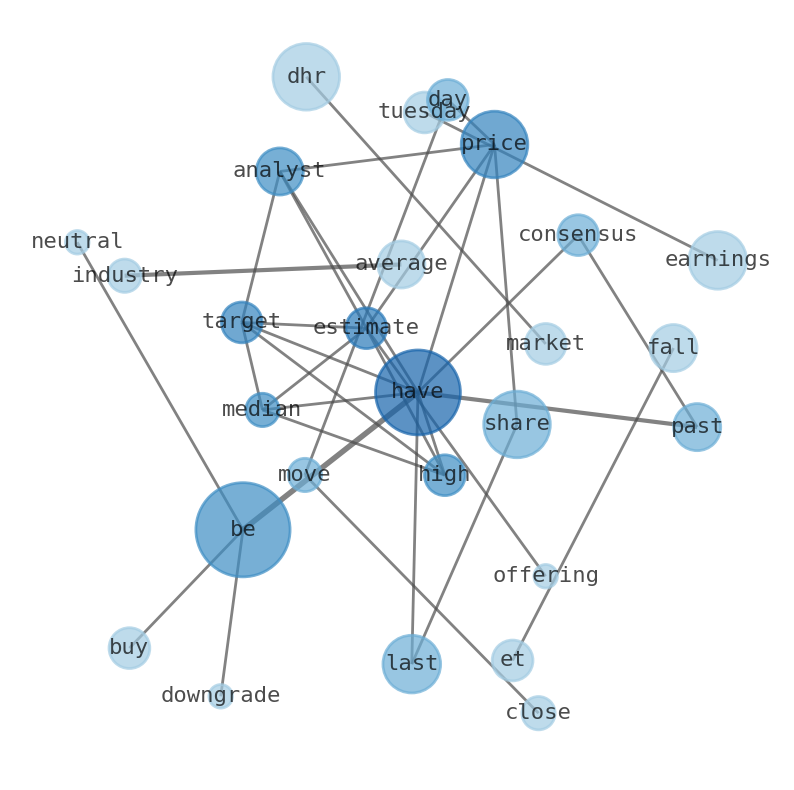 Are looking for the most relevant information about Danaher? Investor spend a lot of time searching for information to make investment decisions in Danaher. This task is often burdensome and consumes huge amounts of free time. It also leads to mistakes due to fatigue and bounded rationality. As a solution, we programmed an artificial intelligence that reads the whole internet and the uses natural language processing and vectorizers to summarize the information. Usually, the AI reads several hundred pages and summarize it to a short document. This document presents our results. We found that the most common words in the internet about Danaher are: Danaher, DHR, price, share, last, stock, year, and the most common words in the summary are: danaher, stock, corp, dhr, price, market, best, . One of the sentences in the summary was: The overall consensus recommendation for Danaher is Buy. Other searches related to this term …