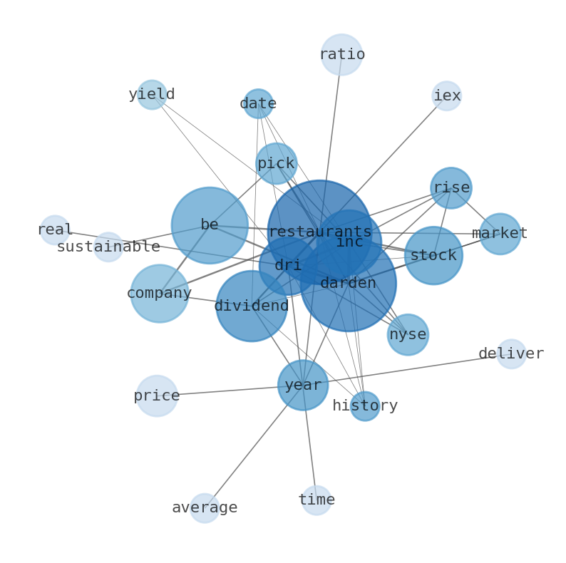 Are looking for the most relevant information about Darden Restaurants? Investor spend a lot of time searching for information to make investment decisions in Darden Restaurants. This task is often burdensome and consumes huge amounts of free time. It also leads to mistakes due to fatigue and bounded rationality. As a solution, we programmed an artificial intelligence that reads the whole internet and the uses natural language processing and vectorizers to summarize the information. Usually, the AI reads several hundred pages and summarize it to a short document. This document presents our results. We found that the most common words in the internet about Darden Restaurants are: Darden, Restaurants, dividend, Inc, DRI, company, year, and the most common words in the summary are: darden, restaurant, stock, inc, dividend, analyst, news, . One of the sentences in the summary was: pays a US$1.31 dividend in just four days. Other searches related …