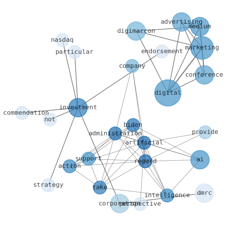This document will help you to evaluate Digimarc without reading an infinite amount of sources. Relying only on stock quotes or prices to make investment decisions is a mistake. Analyzing and observing stock charts, highs and lows and other numerical data does not allow to evaluate the real value of a company. Stock quotes and prices are the result of underlying characteristics of a company and of events and news happening around them. For this reason, investing must be based on information, not numbers. As a solution, we programmed an artificial intelligence that reads the whole internet and the uses natural language processing and vectorizers to summarize the information. Usually, the AI reads several hundred pages and summarize it to a short document. This document presents our results. We found that the most common words in the internet about Digimarc are: Digimarc, Digital, Marketing, AI, Corporation, event, investment, and the most common words in the summary are: digimarc, digimarcon, digital, event, ai, bloomberg, marketing, . One of the sentences in the summary was: Digimarc supports the actions taken by the Biden Administration regarding Artificial Intelligence (AI) The company provides their perspective on the Executive Order on AI. Other searches related to this term that the AI found were: stockmarketlive, livestock, stockmarketforbeginners, thestockmarket, stockmarkettoday, stockmarkettrading, stockmarketstocks, todaystockmarket, thestockmarket, marketnews, stockmarketnews, whatisstockmarket, usstockmarket, stockmarketopen. #digimarc #digimarcon #digital #event #ai #bloomberg #marketing.