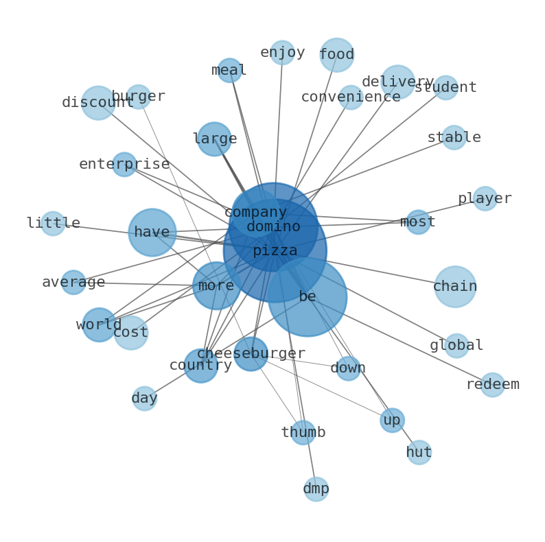 The game is changing. There is a new strategy to evaluate Dominos Pizza fundamental value, possible risks and most salient advantages. Investors have traditionally relied in reading large amounts of text to evaluate the fundamental value of a stock or company. However, the development of Artificial Intelligence (AI) tools is modifying the way investments are evaluated in markets. Today, machine learning, natural language processing and bigdata allow making this process automatic, reducing large amounts of text to the elements that have a higher activation in a neural network. We programmed an artificial intelligence that reads the whole internet and the uses natural language processing and vectorizers to summarize the information. Usually, the AI reads several hundred pages and summarize it to a short document. This document presents our results. We found that the most common words in the internet about Dominos Pizza are: Dominos, Pizza, pizza, company, chain, analyst, country, …