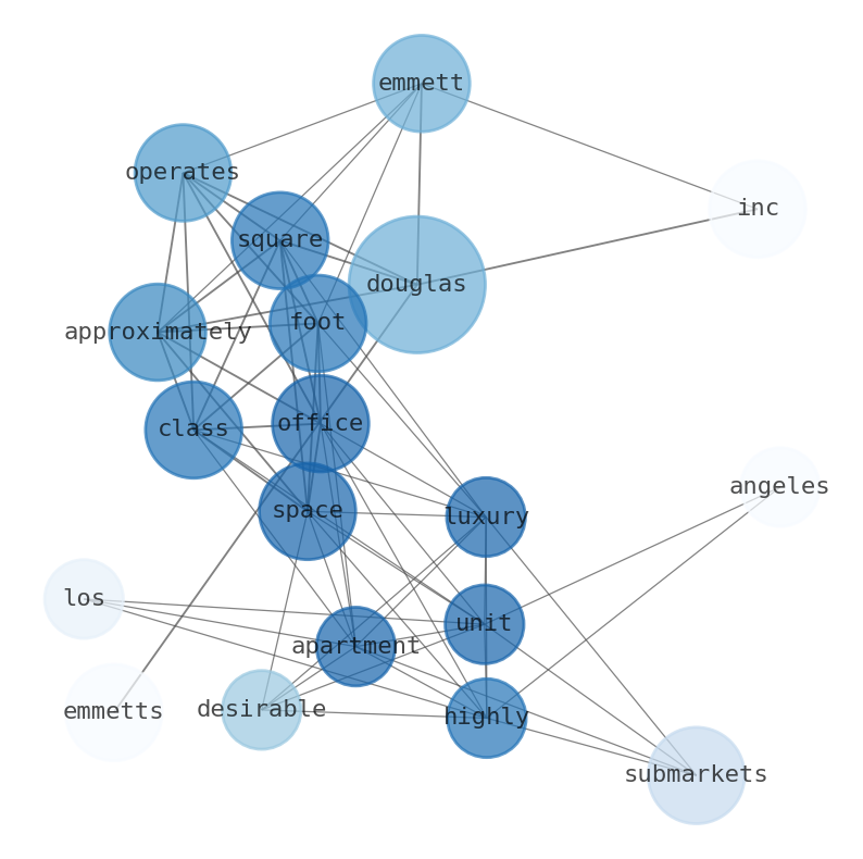 Are looking for the most relevant information about Douglas Emmett? Investor spend a lot of time searching for information to make investment decisions in Douglas Emmett. This task is often burdensome and consumes huge amounts of free time. It also leads to mistakes due to fatigue and bounded rationality. As a solution, we programmed an artificial intelligence that reads the whole internet and the uses natural language processing and vectorizers to summarize the information. Usually, the AI reads several hundred pages and summarize it to a short document. This document presents our results. We found that the most common words in the internet about Douglas Emmett are: Douglas, Emmett, Inc, operate, approximately, square, foot, and the most common words in the summary are: e, view, mo, mile, yes, douglas, blake, . One of the sentences in the summary was: Dimensional Fund Advisors LP cut its stake in Douglas Emmett, Inc., …