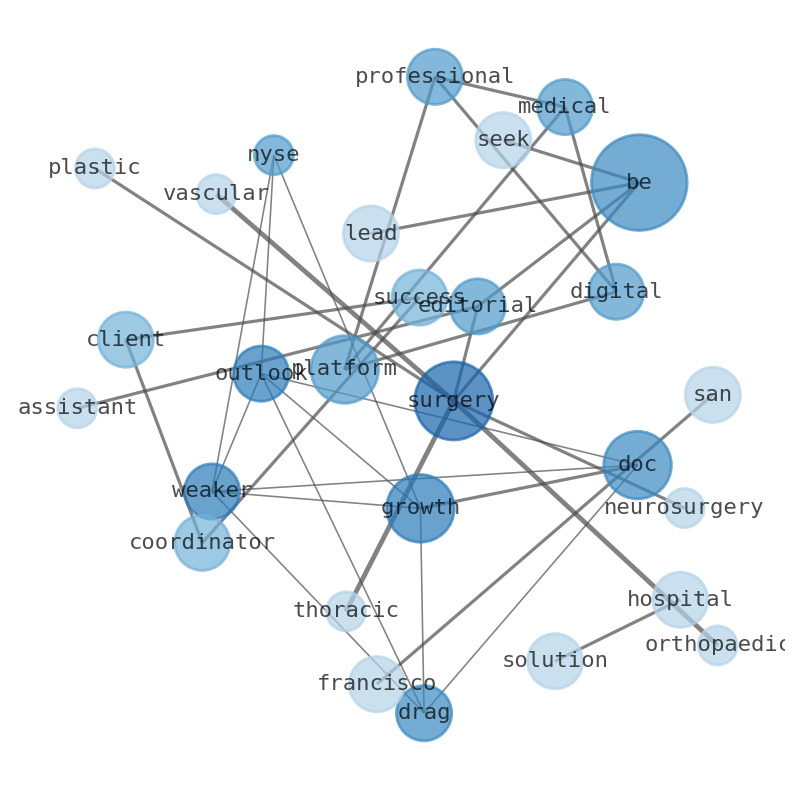 Are looking for the most relevant information about Doximity? Investor spend a lot of time searching for information to make investment decisions in Doximity. This task is often burdensome and consumes huge amounts of free time. It also leads to mistakes due to fatigue and bounded rationality. As a solution, we programmed an artificial intelligence that reads the whole internet and the uses natural language processing and vectorizers to summarize the information. Usually, the AI reads several hundred pages and summarize it to a short document. This document presents our results. We found that the most common words in the internet about Doximity are: Doximity, Surgery, Inc, platform, drag, doximity, Growth, and the most common words in the summary are: doximity, market, stock, inc, md, comment, report, . One of the sentences in the summary was: Doximity Hospital Solutions is seeking a Client Success Coordinator to join its growing team. Other searches related to this term that the AI found were: stockmarketlive, livestock, stockmarketforbeginners, thestockmarket, stockmarkettoday, stockmarkettrading, stockmarketstocks, todaystockmarket, thestockmarket, marketnews, stockmarketnews, whatisstockmarket, usstockmarket, stockmarketopen. #doximity #market #stock #inc #md #comment #report.
