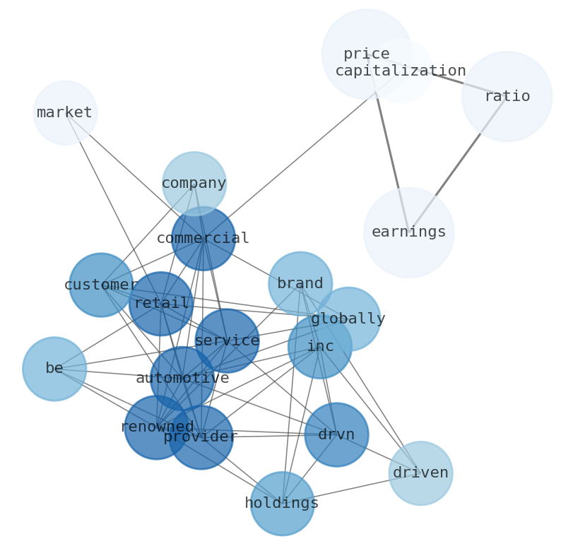 This document will help you to evaluate Driven Brands Holdings without reading an infinite amount of sources. Relying only on stock quotes or prices to make investment decisions is a mistake. Analyzing and observing stock charts, highs and lows and other numerical data does not allow to evaluate the real value of a company. Stock quotes and prices are the result of underlying characteristics of a company and of events and news happening around them. For this reason, investing must be based on information, not numbers. As a solution, we programmed an artificial intelligence that reads the whole internet and the uses natural language processing and vectorizers to summarize the information. Usually, the AI reads several hundred pages and summarize it to a short document. This document presents our results. We found that the most common words in the internet about Driven Brands Holdings are: ratio, Driven, Brands, Holdings, Inc, …