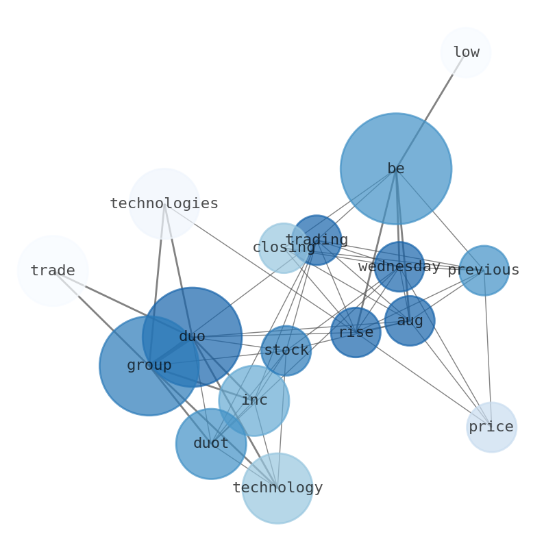 The development of Artificial Intelligence (AI) is modifying the way investments are evaluated. We programmed an artificial intelligence (A.I.) to summarize the whole internet. Whether you’re trying to make money investing online, making financial decisions or just getting informed about Wall Street, this page is a way to get informed without reading hundred of pages. Our stock market summary graphs are produced using machine learning, an unbiased view to capture what internet is saying. Usually, the AI reads several hundred pages and summarize it to a short text and several charts.
