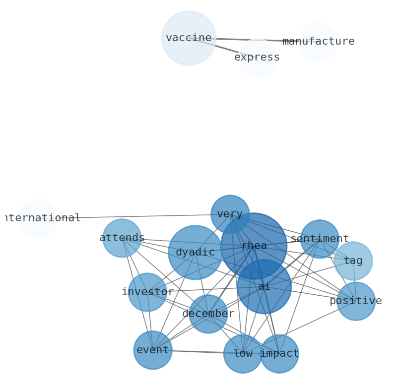 This document will help you to evaluate Dyadic International without reading an infinite amount of sources. Relying only on stock quotes or prices to make investment decisions is a mistake. Analyzing and observing stock charts, highs and lows and other numerical data does not allow to evaluate the real value of a company. Stock quotes and prices are the result of underlying characteristics of a company and of events and news happening around them. For this reason, investing must be based on information, not numbers. As a solution, we programmed an artificial intelligence that reads the whole internet and the uses natural language processing and vectorizers to summarize the information. Usually, the AI reads several hundred pages and summarize it to a short document. This document presents our results. We found that the most common words in the internet about Dyadic International are: Dyadic, Rhea, C1, vaccine, Attends, Investor, Events, and the most common words in the summary are: follow, international, dyadic, nasdaq, inc, health, clinical, . One of the sentences in the summary was: We believe that vaccines expressed from C1 are particularly well-suited for African conditions.. Other searches related to this term that the AI found were: stockmarketlive, livestock, stockmarketforbeginners, thestockmarket, stockmarkettoday, stockmarkettrading, stockmarketstocks, todaystockmarket, thestockmarket, marketnews, stockmarketnews, whatisstockmarket, usstockmarket, stockmarketopen. #follow #international #dyadic #nasdaq #inc #health #clinical.
