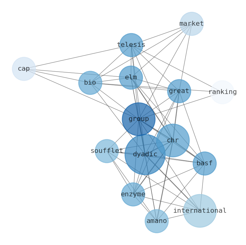 This document will help you to evaluate Dyadic International without reading an infinite amount of sources. Relying only on stock quotes or prices to make investment decisions is a mistake. Analyzing and observing stock charts, highs and lows and other numerical data does not allow to evaluate the real value of a company. Stock quotes and prices are the result of underlying characteristics of a company and of events and news happening around them. For this reason, investing must be based on information, not numbers. As a solution, we programmed an artificial intelligence that reads the whole internet and the uses natural language processing and vectorizers to summarize the information. Usually, the AI reads several hundred pages and summarize it to a short document. This document presents our results. We found that the most common words in the internet about Dyadic International are: Dyadic, International, Group, Chr, Soufflet, Amano, Enzymes, …