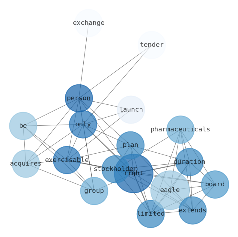 Eagle Pharmaceuticals Board Extends Limited Duration Stockholder Rights Plan. Rights will be exercisable only if a person or group acquires or launches a tender or exchange offer to acquire beneficial ownership of 10% or more of Eagles outstanding common stock.