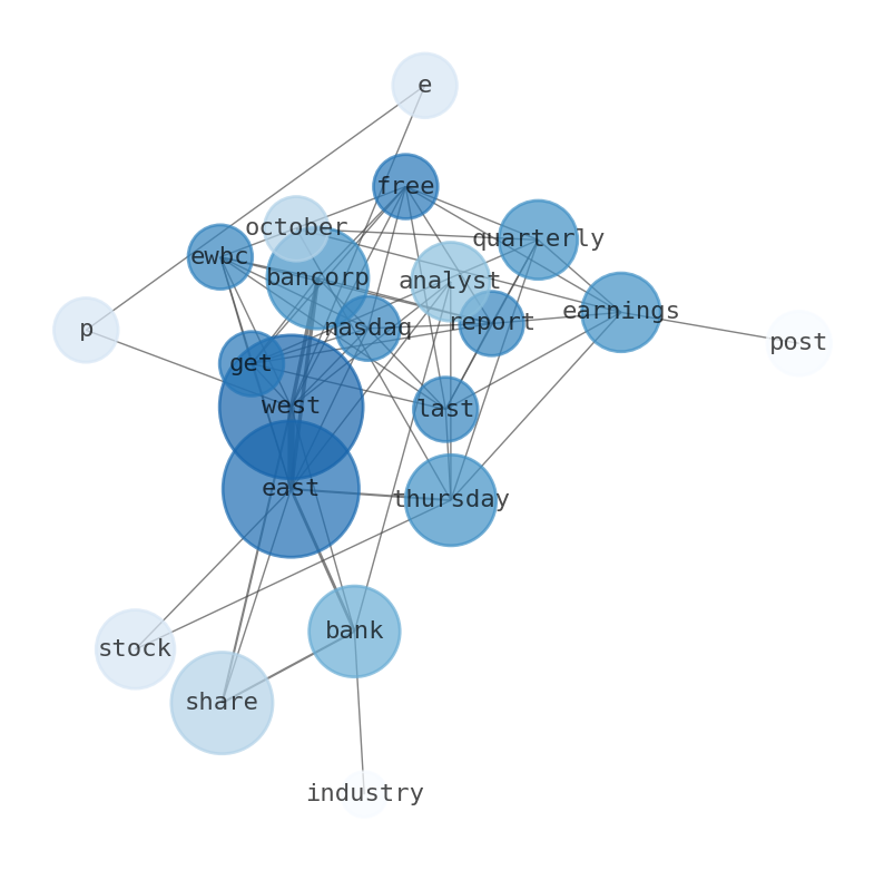 How much time have you spent trying to decide whether investing in East West Bancorp? Many investors start with the dream of being free. They expect to find on the stock market an option to have time to develop their own interests and hobbies. That is, a way to escape a 9 to 5 job. However, investment is complex and investors end up spending whole days (and nights) trying to figure out which the right stock to invest is. The dream of stock investing becomes the nightmare of facing infinity amounts of information. As a solution, we programmed an artificial intelligence that reads the whole internet and the uses natural language processing and vectorizers to summarize the information. Usually, the AI reads several hundred pages and summarize it to a short document. This document presents our results. We found that the most common words in the internet about East West Bancorp are: West, East, Bancorp, share, Thursday, Bank, quarterly, and the most common words in the summary are: west, east, bancorp, job, bank, stock, top, . One of the sentences in the summary was: Vice Chairman Douglas Paul Krause sold 12,000 shares of the stock in a transaction dated Thursday, November 30th.. Other searches related to this term that the AI found were: stockmarketlive, livestock, stockmarketforbeginners, thestockmarket, stockmarkettoday, stockmarkettrading, stockmarketstocks, todaystockmarket, thestockmarket, marketnews, stockmarketnews, whatisstockmarket, usstockmarket, stockmarketopen. #west #east #bancorp #job #bank #stock #top.