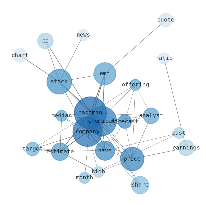 The game is changing. There is a new strategy to evaluate Eastman Chemical Company fundamental value, possible risks and most salient advantages. Investors have traditionally relied in reading large amounts of text to evaluate the fundamental value of a stock or company. However, the development of Artificial Intelligence (AI) tools is modifying the way investments are evaluated in markets. Today, machine learning, natural language processing and bigdata allow making this process automatic, reducing large amounts of text to the elements that have a higher activation in a neural network. We programmed an artificial intelligence that reads the whole internet and the uses natural language processing and vectorizers to summarize the information. Usually, the AI reads several hundred pages and summarize it to a short document. This document presents our results. We found that the most common words in the internet about Eastman Chemical Company are: Eastman, Chemical, Company, price, EMN, …