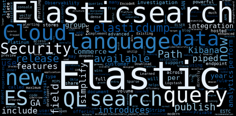 This document will help you to evaluate Elastic without reading an infinite amount of sources. Relying only on stock quotes or prices to make investment decisions is a mistake. Analyzing and observing stock charts, highs and lows and other numerical data does not allow to evaluate the real value of a company. Stock quotes and prices are the result of underlying characteristics of a company and of events and news happening around them. For this reason, investing must be based on information, not numbers. As a solution, we programmed an artificial intelligence that reads the whole internet and the uses natural language processing and vectorizers to summarize the information. Usually, the AI reads several hundred pages and summarize it to a short document. This document presents our results. We found that the most common words in the internet about Elastic are: Elastic, Elasticsearch, Cloud, query, new, language, search, and the …