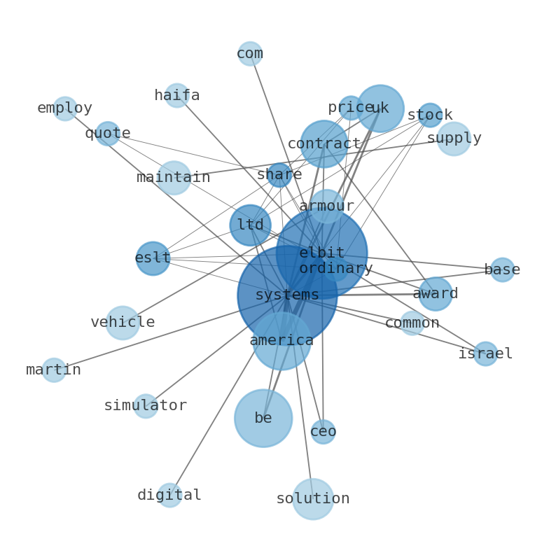 How much time have you spent trying to decide whether investing in Elbit Systems? Many investors start with the dream of being free. They expect to find on the stock market an option to have time to develop their own interests and hobbies. That is, a way to escape a 9 to 5 job. However, investment is complex and investors end up spending whole days (and nights) trying to figure out which the right stock to invest is. The dream of stock investing becomes the nightmare of facing infinity amounts of information. As a solution, we programmed an artificial intelligence that reads the whole internet and the uses natural language processing and vectorizers to summarize the information. Usually, the AI reads several hundred pages and summarize it to a short document. This document presents our results. We found that the most common words in the internet about Elbit Systems are: …