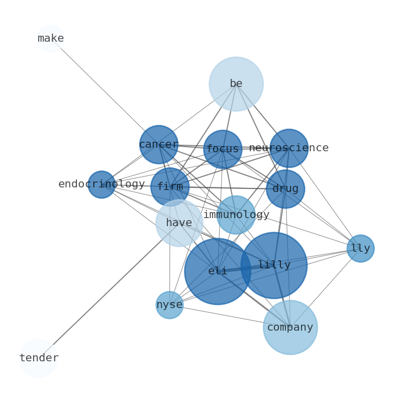 Are looking for the most relevant information about Eli Lilly and Company? Investor spend a lot of time searching for information to make investment decisions in Eli Lilly and Company. This task is often burdensome and consumes huge amounts of free time. It also leads to mistakes due to fatigue and bounded rationality. As a solution, we programmed an artificial intelligence that reads the whole internet and the uses natural language processing and vectorizers to summarize the information. Usually, the AI reads several hundred pages and summarize it to a short document. This document presents our results. We found that the most common words in the internet about Eli Lilly and Company are: Eli, Lilly, Company, drug, firm, focus, neuroscience, and the most common words in the summary are: lilly, eli, stock, company, market, best, buy, . One of the sentences in the summary was: Eli Lilly announced plans to …