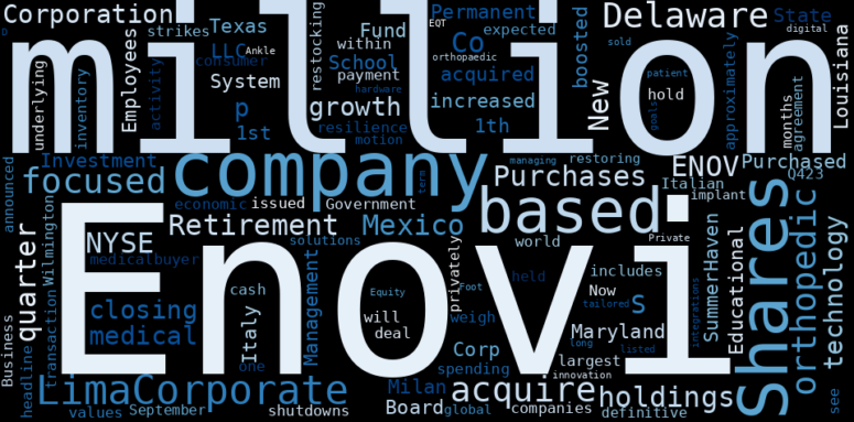 How much time have you spent trying to decide whether investing in Enovis? Many investors start with the dream of being free. They expect to find on the stock market an option to have time to develop their own interests and hobbies. That is, a way to escape a 9 to 5 job. However, investment is complex and investors end up spending whole days (and nights) trying to figure out which the right stock to invest is. The dream of stock investing becomes the nightmare of facing infinity amounts of information. As a solution, we programmed an artificial intelligence that reads the whole internet and the uses natural language processing and vectorizers to summarize the information. Usually, the AI reads several hundred pages and summarize it to a short document. This document presents our results. We found that the most common words in the internet about Enovis are: Enovis, company, …