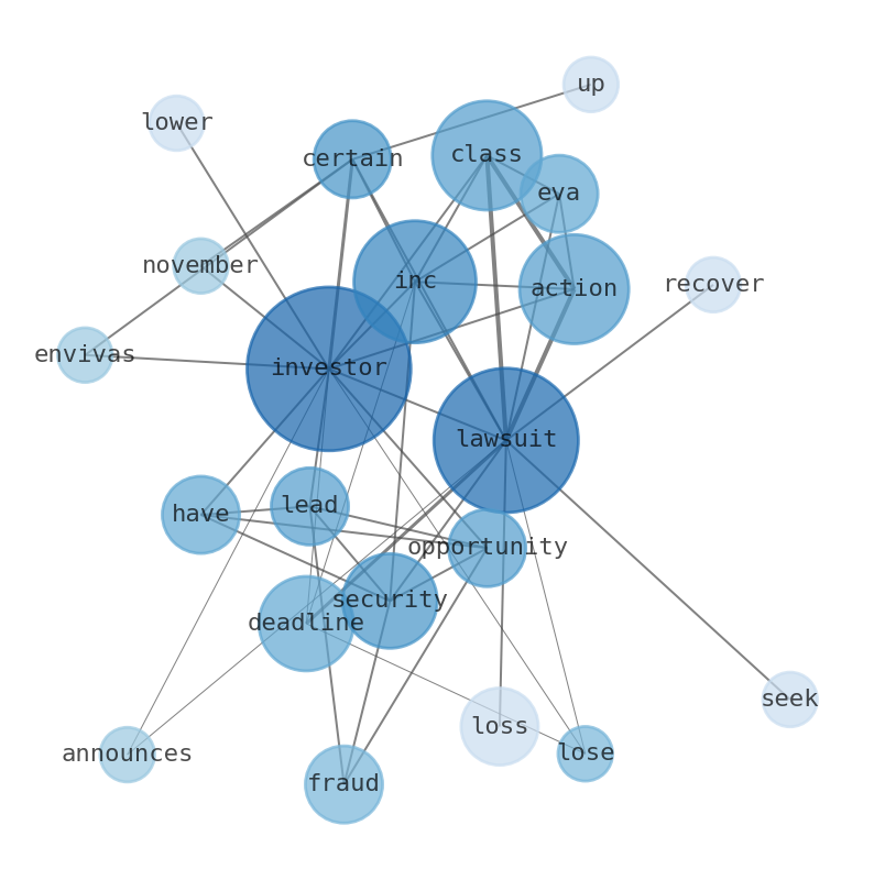 This document will help you to evaluate Enviva without reading an infinite amount of sources. Relying only on stock quotes or prices to make investment decisions is a mistake. Analyzing and observing stock charts, highs and lows and other numerical data does not allow to evaluate the real value of a company. Stock quotes and prices are the result of underlying characteristics of a company and of events and news happening around them. For this reason, investing must be based on information, not numbers. As a solution, we programmed an artificial intelligence that reads the whole internet and the uses natural language processing and vectorizers to summarize the information. Usually, the AI reads several hundred pages and summarize it to a short document. This document presents our results. We found that the most common words in the internet about Enviva are: lawsuit, investor, Inc, Enviva, class, action, Investors, and the most common words in the summary are: enviva, inc, investor, eva, class, stock, business, . One of the sentences in the summary was: Deadline in Lawsuit for Investors who lost over $100,000 in. Other searches related to this term that the AI found were: stockmarketlive, livestock, stockmarketforbeginners, thestockmarket, stockmarkettoday, stockmarkettrading, stockmarketstocks, todaystockmarket, thestockmarket, marketnews, stockmarketnews, whatisstockmarket, usstockmarket, stockmarketopen. #enviva #inc #investor #eva #class #stock #business.