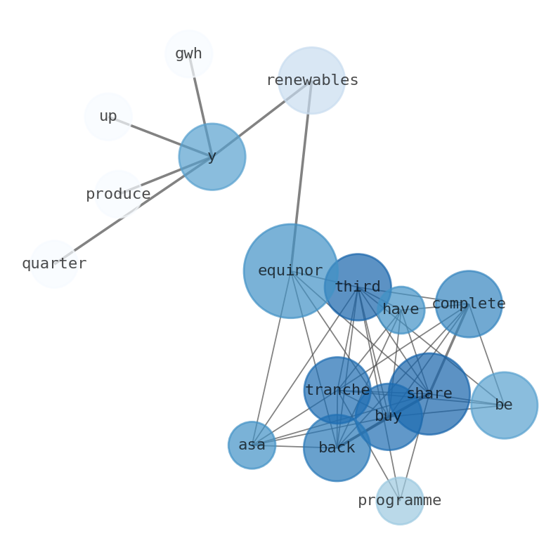 Equinor ASA: Share buy-back – third tranche for 2025 has been completed. Third tranche of the 2025 share buy back programme completed. Equinors shares are down 0.09% at $22.46 premarket at the last check. Equinor unveils $5 billion buyback, trims renewables spending as oil & gas output rises - equinor (nyse:eqnr) - benzinga.com. EquinOr produced 829 GWh from renewables, up 19% Y/Y, in the quarter.