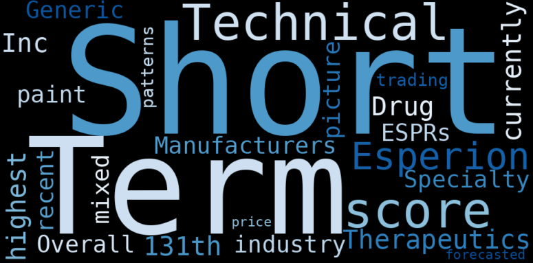 This document will help you to evaluate Esperion Therapeutics without reading an infinite amount of sources. Relying only on stock quotes or prices to make investment decisions is a mistake. Analyzing and observing stock charts, highs and lows and other numerical data does not allow to evaluate the real value of a company. Stock quotes and prices are the result of underlying characteristics of a company and of events and news happening around them. For this reason, investing must be based on information, not numbers. As a solution, we programmed an artificial intelligence that reads the whole internet and the uses natural language processing and vectorizers to summarize the information. Usually, the AI reads several hundred pages and summarize it to a short document. This document presents our results. We found that the most common words in the internet about Esperion Therapeutics are: Technical, score, Esperion, Therapeutics, Inc, currently, high, …