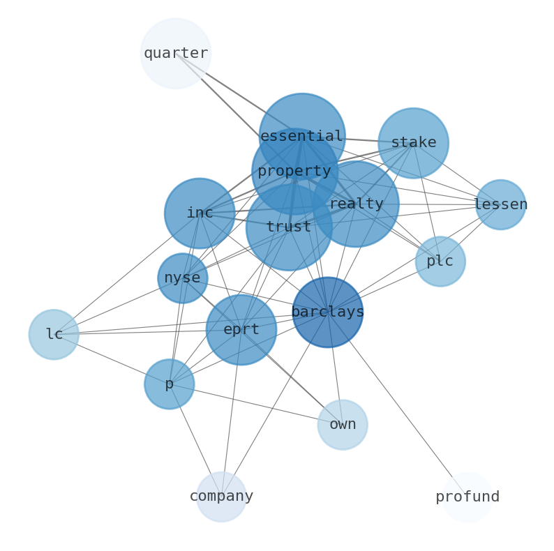 Are looking for the most relevant information about Essential Properties Realty Trust? Investor spend a lot of time searching for information to make investment decisions in Essential Properties Realty Trust. This task is often burdensome and consumes huge amounts of free time. It also leads to mistakes due to fatigue and bounded rationality. As a solution, we programmed an artificial intelligence that reads the whole internet and the uses natural language processing and vectorizers to summarize the information. Usually, the AI reads several hundred pages and summarize it to a short document. This document presents our results. We found that the most common words in the internet about Essential Properties Realty Trust are: Essential, Properties, Realty, Barclays, PLC, stake, Trust, and the most common words in the summary are: trust, property, inc, realty, real, estate, stock, . One of the sentences in the summary was: This is a positive change …