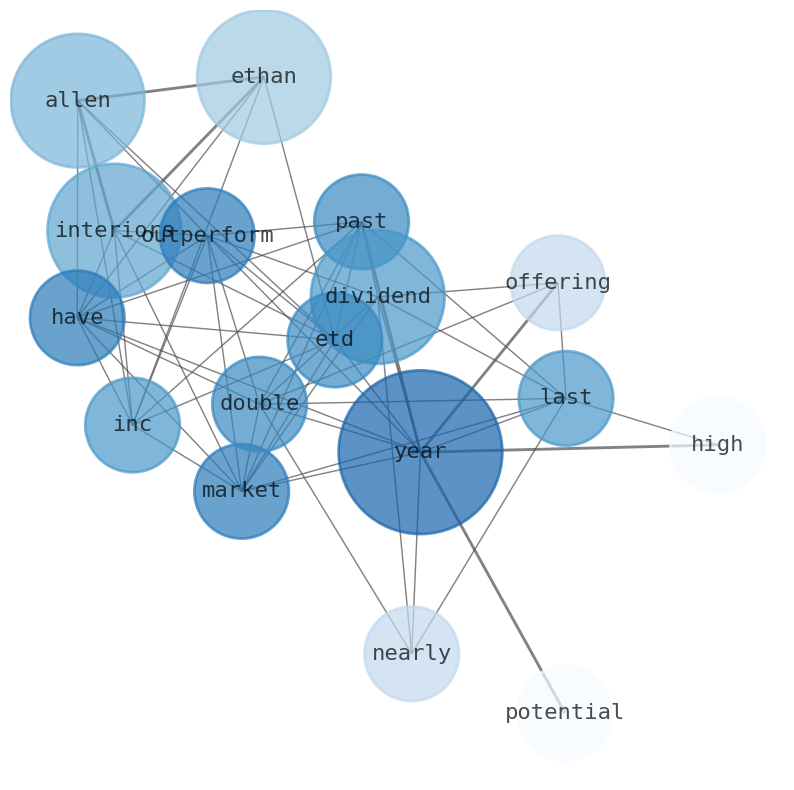 This document will help you to evaluate Ethan Allen Interiors without reading an infinite amount of sources. Relying only on stock quotes or prices to make investment decisions is a mistake. Analyzing and observing stock charts, highs and lows and other numerical data does not allow to evaluate the real value of a company. Stock quotes and prices are the result of underlying characteristics of a company and of events and news happening around them. For this reason, investing must be based on information, not numbers. As a solution, we programmed an artificial intelligence that reads the whole internet and the uses natural language processing and vectorizers to summarize the information. Usually, the AI reads several hundred pages and summarize it to a short document. This document presents our results. We found that the most common words in the internet about Ethan Allen Interiors are: Ethan, Allen, year, Interiors, Inc, ETD, outperform, and the most common words in the summary are: ethan, allen, home, sale, market, interior, price, . One of the sentences in the summary was: Ethan Allen interiors: Lock In The Dividend Yield Of 5.3%.. Other searches related to this term that the AI found were: stockmarketlive, livestock, stockmarketforbeginners, thestockmarket, stockmarkettoday, stockmarkettrading, stockmarketstocks, todaystockmarket, thestockmarket, marketnews, stockmarketnews, whatisstockmarket, usstockmarket, stockmarketopen. #ethan #allen #home #sale #market #interior #price.