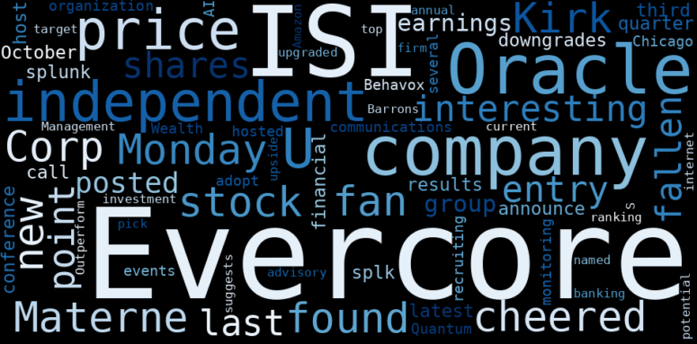 How much time have you spent trying to decide whether investing in Evercore? Many investors start with the dream of being free. They expect to find on the stock market an option to have time to develop their own interests and hobbies. That is, a way to escape a 9 to 5 job. However, investment is complex and investors end up spending whole days (and nights) trying to figure out which the right stock to invest is. The dream of stock investing becomes the nightmare of facing infinity amounts of information. As a solution, we programmed an artificial intelligence that reads the whole internet and the uses natural language processing and vectorizers to summarize the information. Usually, the AI reads several hundred pages and summarize it to a short document. This document presents our results. We found that the most common words in the internet about Evercore are: Evercore, Oracle, …