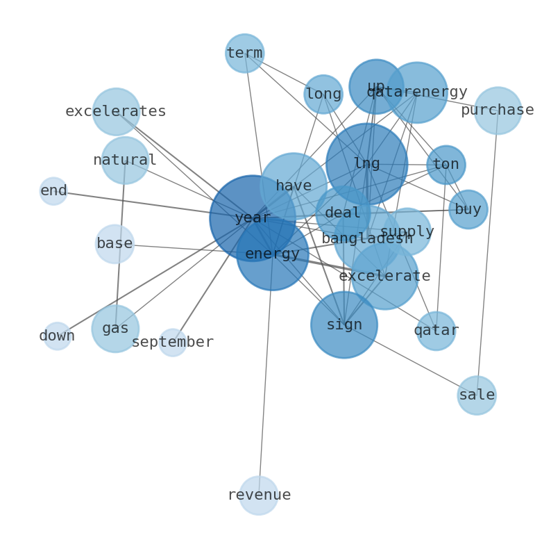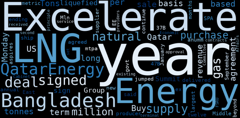 This document will help you to evaluate Excelerate Energy without reading an infinite amount of sources. Relying only on stock quotes or prices to make investment decisions is a mistake. Analyzing and observing stock charts, highs and lows and other numerical data does not allow to evaluate the real value of a company. Stock quotes and prices are the result of underlying characteristics of a company and of events and news happening around them. For this reason, investing must be based on information, not numbers. As a solution, we programmed an artificial intelligence that reads the whole internet and the uses natural language processing and vectorizers to summarize the information. Usually, the AI reads several hundred pages and summarize it to a short document. This document presents our results. We found that the most common words in the internet about Excelerate Energy are: LNG, Energy, Excelerate, Bangladesh, QatarEnergy, sign, year, …
