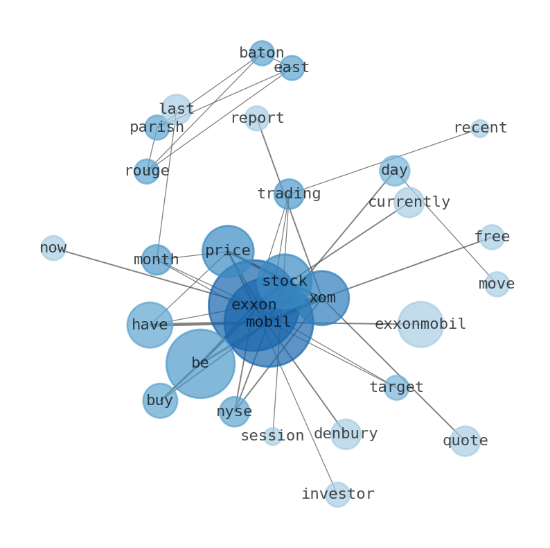 How much time have you spent trying to decide whether investing in Exxon Mobil? Many investors start with the dream of being free. They expect to find on the stock market an option to have time to develop their own interests and hobbies. That is, a way to escape a 9 to 5 job. However, investment is complex and investors end up spending whole days (and nights) trying to figure out which the right stock to invest is. The dream of stock investing becomes the nightmare of facing infinity amounts of information. As a solution, we programmed an artificial intelligence that reads the whole internet and the uses natural language processing and vectorizers to summarize the information. Usually, the AI reads several hundred pages and summarize it to a short document. This document presents our results. We found that the most common words in the internet about Exxon Mobil are: …
