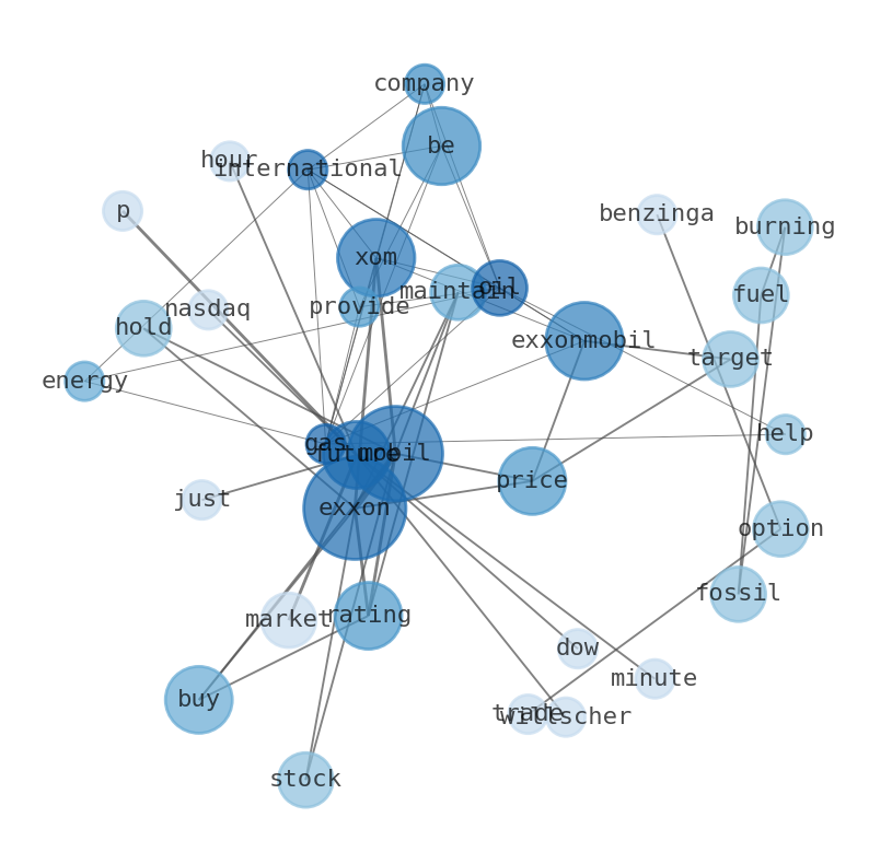 Are looking for the most relevant information about Exxon Mobil? Investor spend a lot of time searching for information to make investment decisions in Exxon Mobil. This task is often burdensome and consumes huge amounts of free time. It also leads to mistakes due to fatigue and bounded rationality. As a solution, we programmed an artificial intelligence that reads the whole internet and the uses natural language processing and vectorizers to summarize the information. Usually, the AI reads several hundred pages and summarize it to a short document. This document presents our results. We found that the most common words in the internet about Exxon Mobil are: Exxon, Mobil, ExxonMobil, XOM, Futures, rating, price, and the most common words in the summary are: stock, exxon, mobil, market, oil, price, energy, . One of the sentences in the summary was: RBC Capital analyst Biraj Borkhataria maintained a Hold rating on Exxon …
