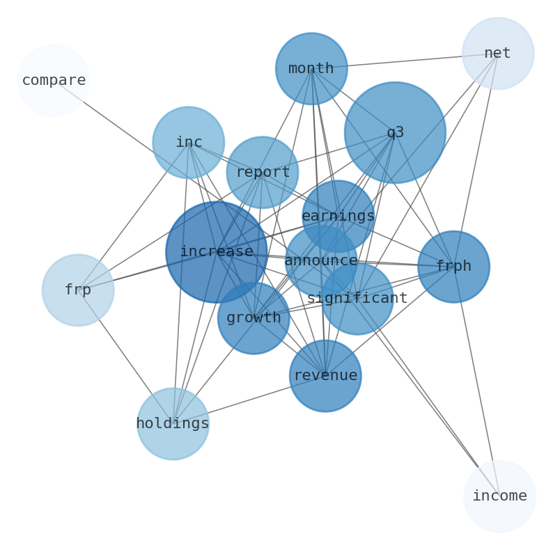 The game is changing. There is a new strategy to evaluate FRP Holdings fundamental value, possible risks and most salient advantages. Investors have traditionally relied in reading large amounts of text to evaluate the fundamental value of a stock or company. However, the development of Artificial Intelligence (AI) tools is modifying the way investments are evaluated in markets. Today, machine learning, natural language processing and bigdata allow making this process automatic, reducing large amounts of text to the elements that have a higher activation in a neural network. We programmed an artificial intelligence that reads the whole internet and the uses natural language processing and vectorizers to summarize the information. Usually, the AI reads several hundred pages and summarize it to a short document. This document presents our results. We found that the most common words in the internet about FRP Holdings are: increase, FRP, Holdings, Inc, report, earnings, revenue, …