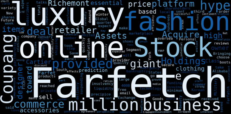 The game is changing. There is a new strategy to evaluate Farfetch fundamental value, possible risks and most salient advantages. Investors have traditionally relied in reading large amounts of text to evaluate the fundamental value of a stock or company. However, the development of Artificial Intelligence (AI) tools is modifying the way investments are evaluated in markets. Today, machine learning, natural language processing and bigdata allow making this process automatic, reducing large amounts of text to the elements that have a higher activation in a neural network. We programmed an artificial intelligence that reads the whole internet and the uses natural language processing and vectorizers to summarize the information. Usually, the AI reads several hundred pages and summarize it to a short document. This document presents our results. We found that the most common words in the internet about Farfetch are: Farfetch, online, luxury, fashion, also, Coupang, use, and the …