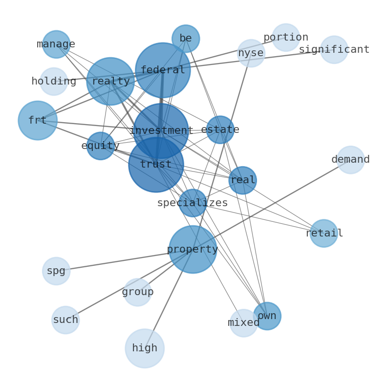 This document will help you to evaluate Federal Realty Investment Trust without reading an infinite amount of sources. Relying only on stock quotes or prices to make investment decisions is a mistake. Analyzing and observing stock charts, highs and lows and other numerical data does not allow to evaluate the real value of a company. Stock quotes and prices are the result of underlying characteristics of a company and of events and news happening around them. For this reason, investing must be based on information, not numbers. As a solution, we programmed an artificial intelligence that reads the whole internet and the uses natural language processing and vectorizers to summarize the information. Usually, the AI reads several hundred pages and summarize it to a short document. This document presents our results. We found that the most common words in the internet about Federal Realty Investment Trust are: Federal, Realty, Investment, …