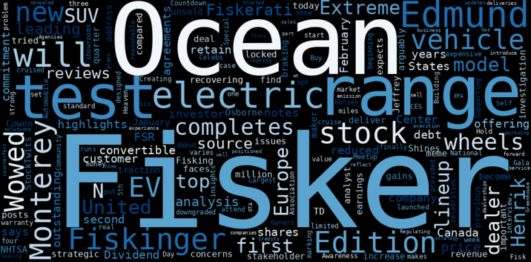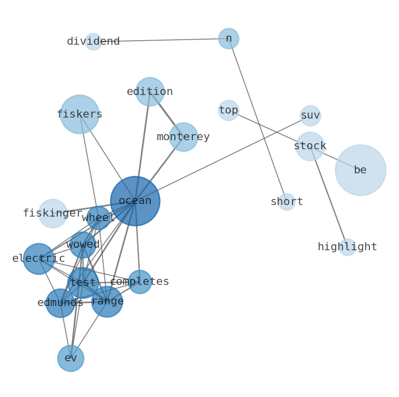 This document will help you to evaluate Fisker without reading an infinite amount of sources. Relying only on stock quotes or prices to make investment decisions is a mistake. Analyzing and observing stock charts, highs and lows and other numerical data does not allow to evaluate the real value of a company. Stock quotes and prices are the result of underlying characteristics of a company and of events and news happening around them. For this reason, investing must be based on information, not numbers. As a solution, we programmed an artificial intelligence that reads the whole internet and the uses natural language processing and vectorizers to summarize the information. Usually, the AI reads several hundred pages and summarize it to a short document. This document presents our results. We found that the most common words in the internet about Fisker are: Fisker, Ocean, Fiskers, Edmunds, Fiskinger, Monterey, stock, and the …