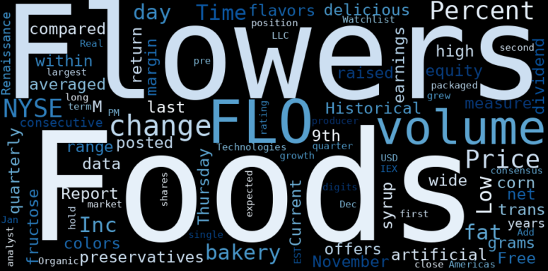 How much time have you spent trying to decide whether investing in Flowers Foods? Many investors start with the dream of being free. They expect to find on the stock market an option to have time to develop their own interests and hobbies. That is, a way to escape a 9 to 5 job. However, investment is complex and investors end up spending whole days (and nights) trying to figure out which the right stock to invest is. The dream of stock investing becomes the nightmare of facing infinity amounts of information. As a solution, we programmed an artificial intelligence that reads the whole internet and the uses natural language processing and vectorizers to summarize the information. Usually, the AI reads several hundred pages and summarize it to a short document. This document presents our results. We found that the most common words in the internet about Flowers Foods are: Flowers, Foods, FLO, volume, Percent, change, NYSE, and the most common words in the summary are: flower, food, pk, inc, delivery, micro, cm, . One of the sentences in the summary was: Flowers Foods has a hold analyst consensus rating.. Other searches related to this term that the AI found were: stockmarketlive, livestock, stockmarketforbeginners, thestockmarket, stockmarkettoday, stockmarkettrading, stockmarketstocks, todaystockmarket, thestockmarket, marketnews, stockmarketnews, whatisstockmarket, usstockmarket, stockmarketopen. #flower #food #pk #inc #delivery #micro #cm.