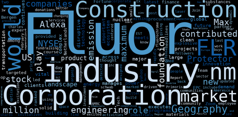 This document will help you to evaluate Fluor without reading an infinite amount of sources. Relying only on stock quotes or prices to make investment decisions is a mistake. Analyzing and observing stock charts, highs and lows and other numerical data does not allow to evaluate the real value of a company. Stock quotes and prices are the result of underlying characteristics of a company and of events and news happening around them. For this reason, investing must be based on information, not numbers. As a solution, we programmed an artificial intelligence that reads the whole internet and the uses natural language processing and vectorizers to summarize the information. Usually, the AI reads several hundred pages and summarize it to a short document. This document presents our results. We found that the most common words in the internet about Fluor are: Fluor, Corporation, industry, play, role, provide, FLR, and the …
