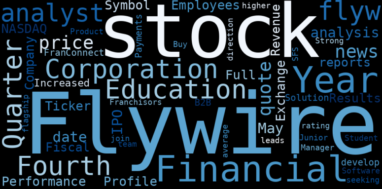 This document will help you to evaluate Flywire without reading an infinite amount of sources. Relying only on stock quotes or prices to make investment decisions is a mistake. Analyzing and observing stock charts, highs and lows and other numerical data does not allow to evaluate the real value of a company. Stock quotes and prices are the result of underlying characteristics of a company and of events and news happening around them. For this reason, investing must be based on information, not numbers. As a solution, we programmed an artificial intelligence that reads the whole internet and the uses natural language processing and vectorizers to summarize the information. Usually, the AI reads several hundred pages and summarize it to a short document. This document presents our results. We found that the most common words in the internet about Flywire are: Flywire, stock, Financial, Fourth, Quarter, analyst, Corporation, and the …