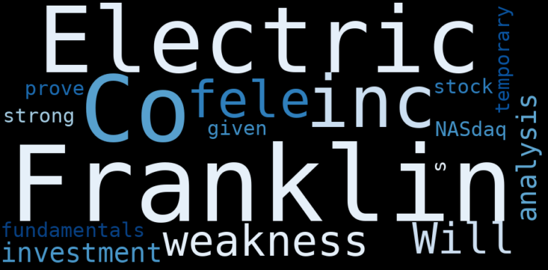 The game is changing. There is a new strategy to evaluate Franklin Electric Co. fundamental value, possible risks and most salient advantages. Investors have traditionally relied in reading large amounts of text to evaluate the fundamental value of a stock or company. However, the development of Artificial Intelligence (AI) tools is modifying the way investments are evaluated in markets. Today, machine learning, natural language processing and bigdata allow making this process automatic, reducing large amounts of text to the elements that have a higher activation in a neural network. We programmed an artificial intelligence that reads the whole internet and the uses natural language processing and vectorizers to summarize the information. Usually, the AI reads several hundred pages and summarize it to a short document. This document presents our results. We found that the most common words in the internet about Franklin Electric Co. are: Franklin, Electric, Co, franklin, inc, investment, analysis, and the most common words in the summary are: franklin, electric, stock, service, news, job, water, . One of the sentences in the summary was: investment analysis and. Other searches related to this term that the AI found were: stockmarketlive, livestock, stockmarketforbeginners, thestockmarket, stockmarkettoday, stockmarkettrading, stockmarketstocks, todaystockmarket, thestockmarket, marketnews, stockmarketnews, whatisstockmarket, usstockmarket, stockmarketopen. #franklin #electric #stock #service #news #job #water.