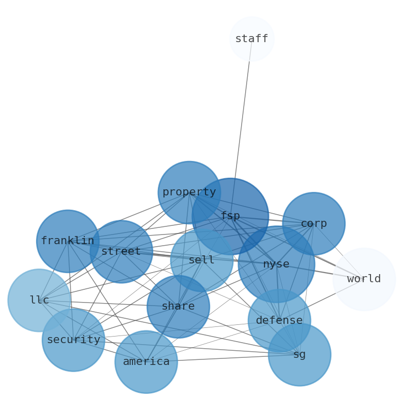 How much time have you spent trying to decide whether investing in Franklin Street Properties? Many investors start with the dream of being free. They expect to find on the stock market an option to have time to develop their own interests and hobbies. That is, a way to escape a 9 to 5 job. However, investment is complex and investors end up spending whole days (and nights) trying to figure out which the right stock to invest is. The dream of stock investing becomes the nightmare of facing infinity amounts of information. As a solution, we programmed an artificial intelligence that reads the whole internet and the uses natural language processing and vectorizers to summarize the information. Usually, the AI reads several hundred pages and summarize it to a short document. This document presents our results. We found that the most common words in the internet about Franklin Street Properties are: SG, Americas, Securities, LLC, Sells, Shares, Franklin, and the most common words in the summary are: franklin, home, property, street, sale, estate, real, . One of the sentences in the summary was: (NYSE:FSP) - defense world. Other searches related to this term that the AI found were: stockmarketlive, livestock, stockmarketforbeginners, thestockmarket, stockmarkettoday, stockmarkettrading, stockmarketstocks, todaystockmarket, thestockmarket, marketnews, stockmarketnews, whatisstockmarket, usstockmarket, stockmarketopen. #franklin #home #property #street #sale #estate #real.