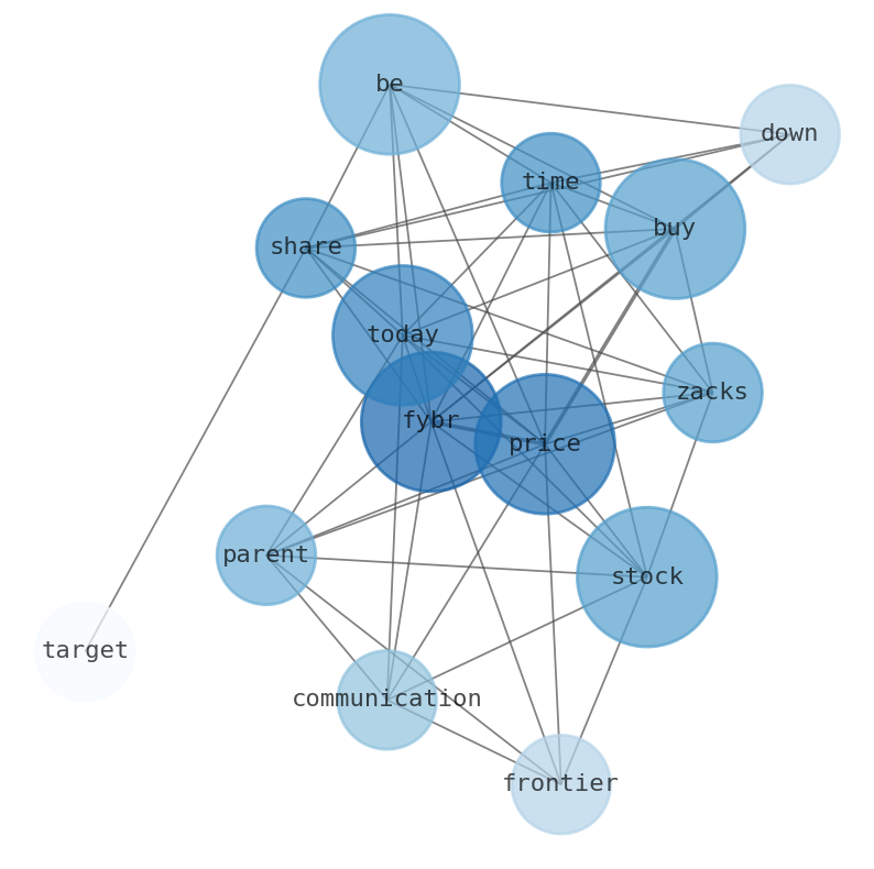 This document will help you to evaluate Frontier Communications Parent without reading an infinite amount of sources. Relying only on stock quotes or prices to make investment decisions is a mistake. Analyzing and observing stock charts, highs and lows and other numerical data does not allow to evaluate the real value of a company. Stock quotes and prices are the result of underlying characteristics of a company and of events and news happening around them. For this reason, investing must be based on information, not numbers. As a solution, we programmed an artificial intelligence that reads the whole internet and the uses natural language processing and vectorizers to summarize the information. Usually, the AI reads several hundred pages and summarize it to a short document. This document presents our results. We found that the most common words in the internet about Frontier Communications Parent are: FYBR, Stock, Price, Buy, Frontier, …