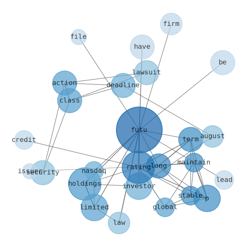 This document will help you to evaluate Futu Holdings without reading an infinite amount of sources. Relying only on stock quotes or prices to make investment decisions is a mistake. Analyzing and observing stock charts, highs and lows and other numerical data does not allow to evaluate the real value of a company. Stock quotes and prices are the result of underlying characteristics of a company and of events and news happening around them. For this reason, investing must be based on information, not numbers. As a solution, we programmed an artificial intelligence that reads the whole internet and the uses natural language processing and vectorizers to summarize the information. Usually, the AI reads several hundred pages and summarize it to a short document. This document presents our results. We found that the most common words in the internet about Futu Holdings are: Futu, Holdings, SP, rating, Limited, FUTU, longterm, and the most common words in the summary are: futu, holding, stock, market, investor, limit, news, . One of the sentences in the summary was: S&P Global Ratings (S&P) maintained stable outlook on the long-term rating of the Company. Other searches related to this term that the AI found were: stockmarketlive, livestock, stockmarketforbeginners, thestockmarket, stockmarkettoday, stockmarkettrading, stockmarketstocks, todaystockmarket, thestockmarket, marketnews, stockmarketnews, whatisstockmarket, usstockmarket, stockmarketopen. #futu #holding #stock #market #investor #limit #news.