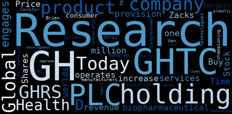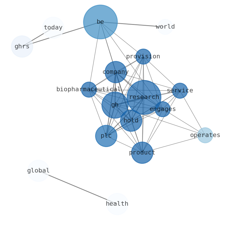 This document will help you to evaluate GH Research without reading an infinite amount of sources. Relying only on stock quotes or prices to make investment decisions is a mistake. Analyzing and observing stock charts, highs and lows and other numerical data does not allow to evaluate the real value of a company. Stock quotes and prices are the result of underlying characteristics of a company and of events and news happening around them. For this reason, investing must be based on information, not numbers. As a solution, we programmed an artificial intelligence that reads the whole internet and the uses natural language processing and vectorizers to summarize the information. Usually, the AI reads several hundred pages and summarize it to a short document. This document presents our results. We found that the most common words in the internet about GH Research are: GH, Research, GHTC, hold, company, product, GHRS, …