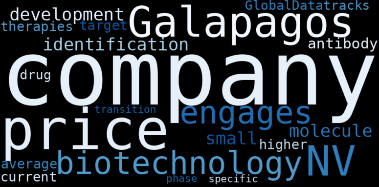 How much time have you spent trying to decide whether investing in Galapagos NV? Many investors start with the dream of being free. They expect to find on the stock market an option to have time to develop their own interests and hobbies. That is, a way to escape a 9 to 5 job. However, investment is complex and investors end up spending whole days (and nights) trying to figure out which the right stock to invest is. The dream of stock investing becomes the nightmare of facing infinity amounts of information. As a solution, we programmed an artificial intelligence that reads the whole internet and the uses natural language processing and vectorizers to summarize the information. Usually, the AI reads several hundred pages and summarize it to a short document. This document presents our results. We found that the most common words in the internet about Galapagos NV are: …