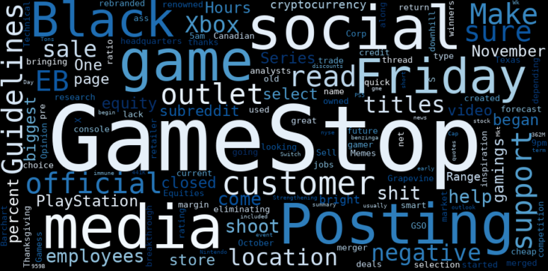 This document will help you to evaluate GameStop without reading an infinite amount of sources. Relying only on stock quotes or prices to make investment decisions is a mistake. Analyzing and observing stock charts, highs and lows and other numerical data does not allow to evaluate the real value of a company. Stock quotes and prices are the result of underlying characteristics of a company and of events and news happening around them. For this reason, investing must be based on information, not numbers. As a solution, we programmed an artificial intelligence that reads the whole internet and the uses natural language processing and vectorizers to summarize the information. Usually, the AI reads several hundred pages and summarize it to a short document. This document presents our results. We found that the most common words in the internet about GameStop are: GameStop, customer, game, Black, Friday, EB, NOT, and the most common words in the summary are: gamestop, stock, game, market, news, deal, price, . One of the sentences in the summary was: GameStop customers looking to trade in their old PlayStation 4 and Xbox One games can get up to $50 of in-store credit when bringing in select titles, along with any pre-owned PlayStation 5, Xbox Series.. Other searches related to this term that the AI found were: stockmarketlive, livestock, stockmarketforbeginners, thestockmarket, stockmarkettoday, stockmarkettrading, stockmarketstocks, todaystockmarket, thestockmarket, marketnews, stockmarketnews, whatisstockmarket, usstockmarket, stockmarketopen. #gamestop #stock #game #market #news #deal #price.