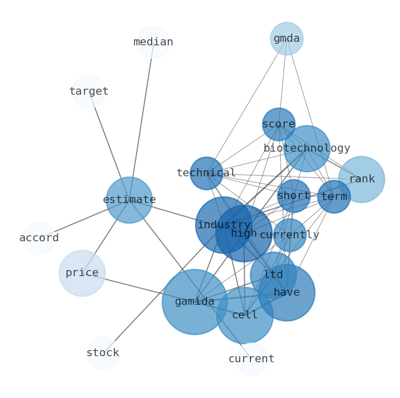 This document will help you to evaluate Gamida Cell without reading an infinite amount of sources. Relying only on stock quotes or prices to make investment decisions is a mistake. Analyzing and observing stock charts, highs and lows and other numerical data does not allow to evaluate the real value of a company. Stock quotes and prices are the result of underlying characteristics of a company and of events and news happening around them. For this reason, investing must be based on information, not numbers. As a solution, we programmed an artificial intelligence that reads the whole internet and the uses natural language processing and vectorizers to summarize the information. Usually, the AI reads several hundred pages and summarize it to a short document. This document presents our results. We found that the most common words in the internet about Gamida Cell are: Gamida, high, industry, Cell, Ltd, rank, price, …