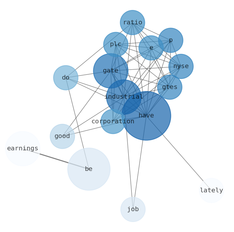 This document will help you to evaluate Gates Industrial without reading an infinite amount of sources. Relying only on stock quotes or prices to make investment decisions is a mistake. Analyzing and observing stock charts, highs and lows and other numerical data does not allow to evaluate the real value of a company. Stock quotes and prices are the result of underlying characteristics of a company and of events and news happening around them. For this reason, investing must be based on information, not numbers. As a solution, we programmed an artificial intelligence that reads the whole internet and the uses natural language processing and vectorizers to summarize the information. Usually, the AI reads several hundred pages and summarize it to a short document. This document presents our results. We found that the most common words in the internet about Gates Industrial are: Gates, Industrial, earnings, Corporation, plc, NYSEGTES, PE, …