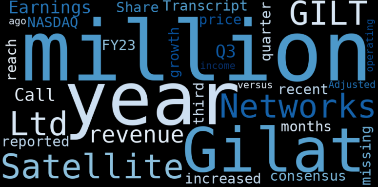Are looking for the most relevant information about Gilat Satellite Networks? Investor spend a lot of time searching for information to make investment decisions in Gilat Satellite Networks. This task is often burdensome and consumes huge amounts of free time. It also leads to mistakes due to fatigue and bounded rationality. As a solution, we programmed an artificial intelligence that reads the whole internet and the uses natural language processing and vectorizers to summarize the information. Usually, the AI reads several hundred pages and summarize it to a short document. This document presents our results. We found that the most common words in the internet about Gilat Satellite Networks are: Gilat, Satellite, Networks, Ltd, GILT, Q3, Earnings, and the most common words in the summary are: satellite, market, network, gilat, news, communication, space, . One of the sentences in the summary was: Gilat Satellite Networks Ltd. Other searches related to this term that the AI found were: stockmarketlive, livestock, stockmarketforbeginners, thestockmarket, stockmarkettoday, stockmarkettrading, stockmarketstocks, todaystockmarket, thestockmarket, marketnews, stockmarketnews, whatisstockmarket, usstockmarket, stockmarketopen. #satellite #market #network #gilat #news #communication #space.