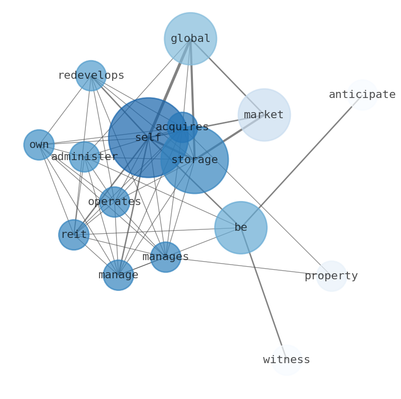 This document will help you to evaluate Global Self Storage without reading an infinite amount of sources. Relying only on stock quotes or prices to make investment decisions is a mistake. Analyzing and observing stock charts, highs and lows and other numerical data does not allow to evaluate the real value of a company. Stock quotes and prices are the result of underlying characteristics of a company and of events and news happening around them. For this reason, investing must be based on information, not numbers. As a solution, we programmed an artificial intelligence that reads the whole internet and the uses natural language processing and vectorizers to summarize the information. Usually, the AI reads several hundred pages and summarize it to a short document. This document presents our results. We found that the most common words in the internet about Global Self Storage are: market, Self, Storage, global, Global, …