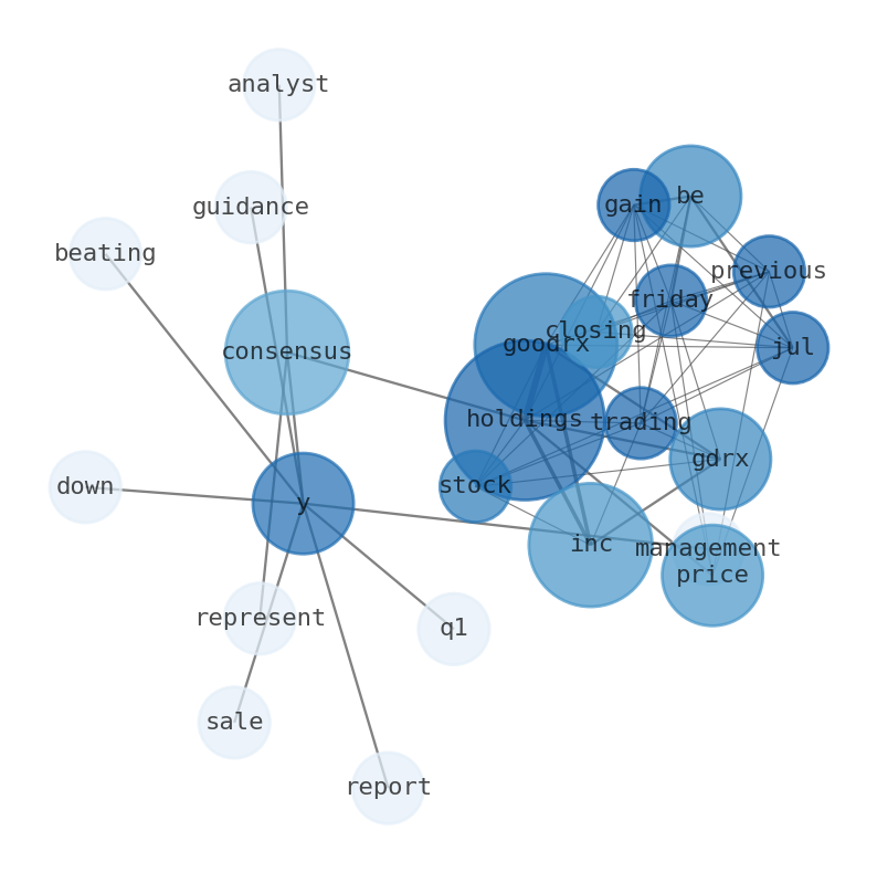 This document will help you to evaluate GoodRx Holdings without reading an infinite amount of sources. Relying only on stock quotes or prices to make investment decisions is a mistake. Analyzing and observing stock charts, highs and lows and other numerical data does not allow to evaluate the real value of a company. Stock quotes and prices are the result of underlying characteristics of a company and of events and news happening around them. For this reason, investing must be based on information, not numbers. As a solution, we programmed an artificial intelligence that reads the whole internet and the uses natural language processing and vectorizers to summarize the information. Usually, the AI reads several hundred pages and summarize it to a short document. This document presents our results. We found that the most common words in the internet about GoodRx Holdings are: Holdings, GoodRx, Inc, consensus, GDRX, price, stock, …