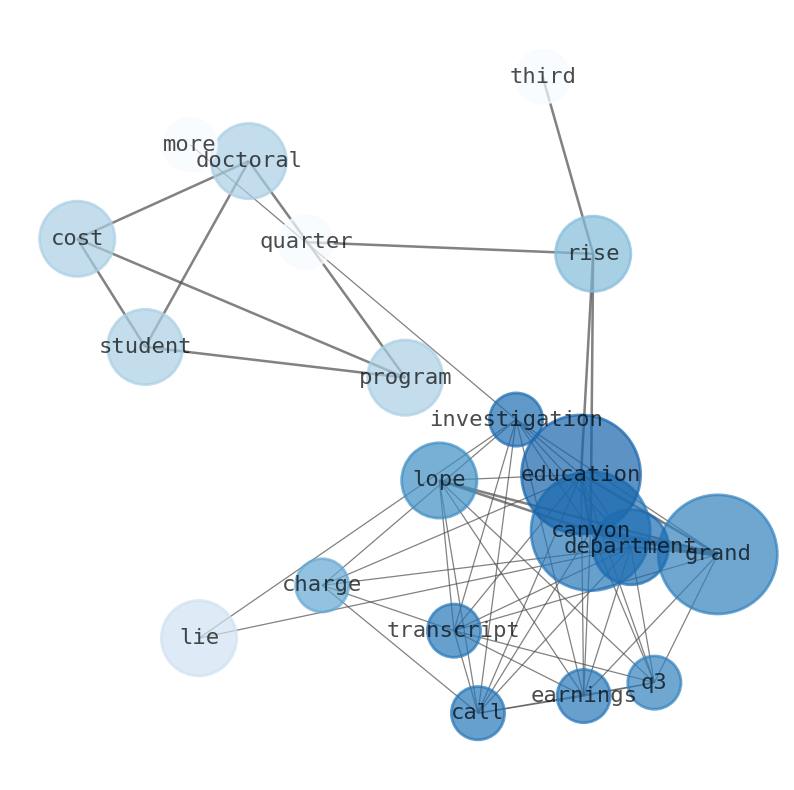 This document will help you to evaluate Grand Canyon Education without reading an infinite amount of sources. Relying only on stock quotes or prices to make investment decisions is a mistake. Analyzing and observing stock charts, highs and lows and other numerical data does not allow to evaluate the real value of a company. Stock quotes and prices are the result of underlying characteristics of a company and of events and news happening around them. For this reason, investing must be based on information, not numbers. As a solution, we programmed an artificial intelligence that reads the whole internet and the uses natural language processing and vectorizers to summarize the information. Usually, the AI reads several hundred pages and summarize it to a short document. This document presents our results. We found that the most common words in the internet about Grand Canyon Education are: Grand, Canyon, Education, LOPE, Department, …